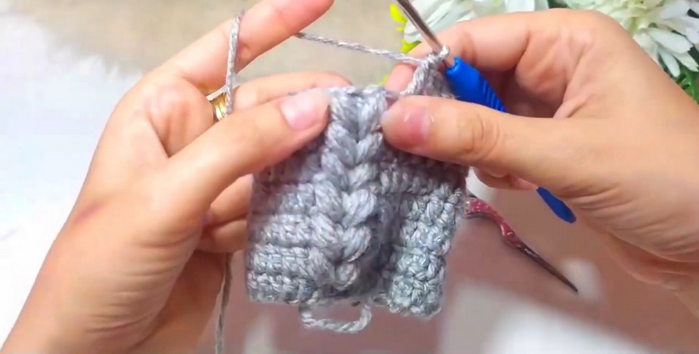 - Work the finger rows by continuing rounds of dc and puff stitches. Adjust the number of rounds based on how high you want the finger segments to go.