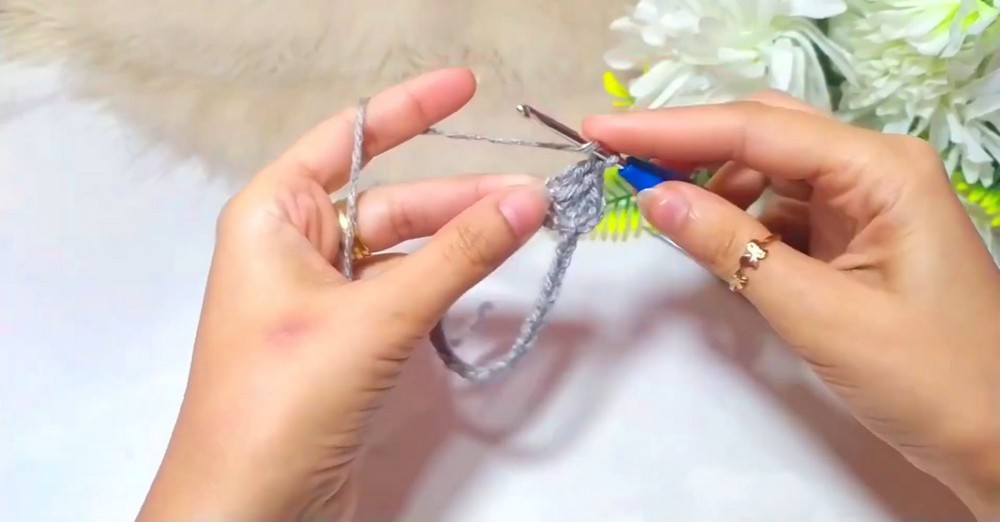 - Create a chain of stitches equal to your wrist circumference. Ensure this chain wraps comfortably around your hand. For the example in the tutorial, 30 ch are used.