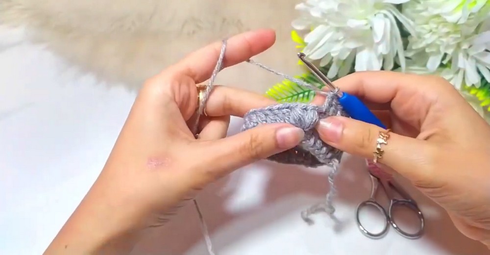 - Work 2 ch (counts as first dc) into the same stitch where you joined.