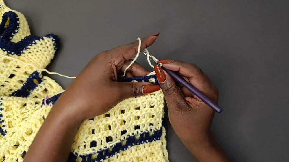 Stitch count: Matches your starting chain (e.g., 83 sc). - Turn your work.