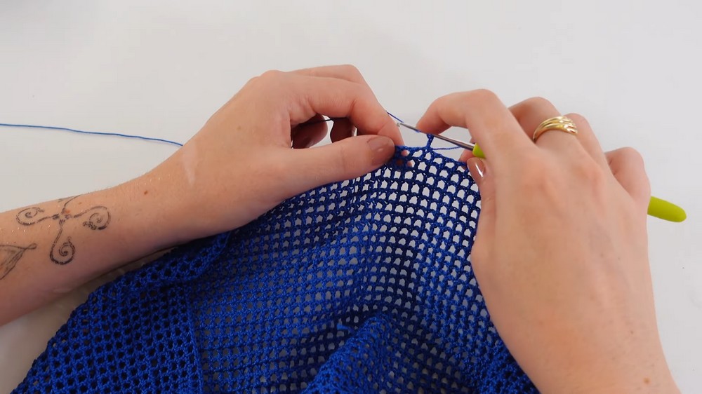 - Continue your fillet crochet design or plain mesh stitch for 23 rounds (or as desired).
