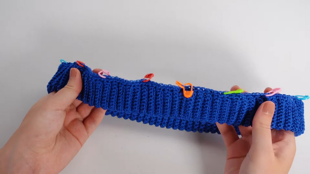 - For middle stitches, single crochet into the back loop only to create the ribbed look.