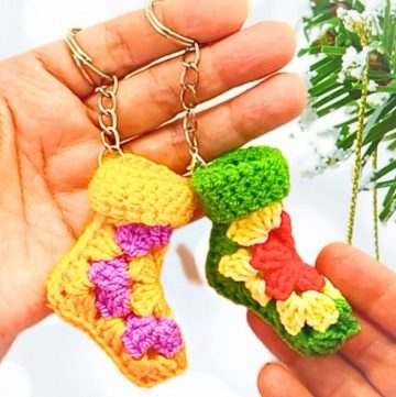 How To Crochet Mini Christmas Stocking Keychains For Gifts