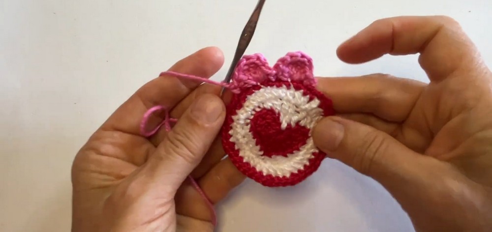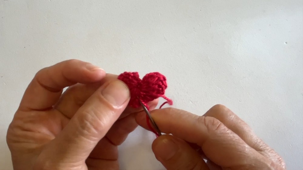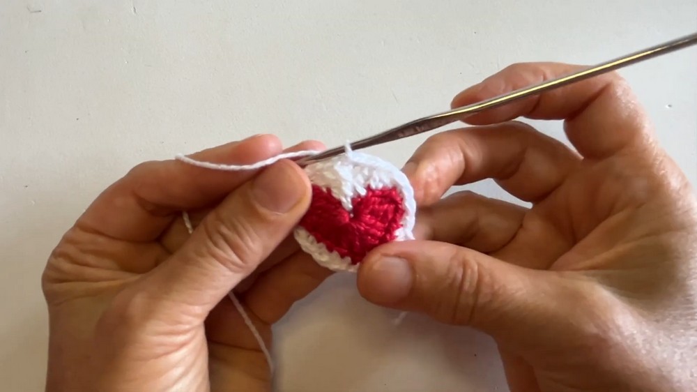 - Alternate the pattern: 2 hdc, 1 hdc around the heart to achieve a total of 36 stitches.