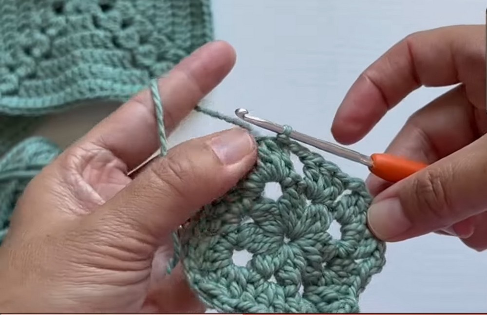 - Slip stitch to the corner space.