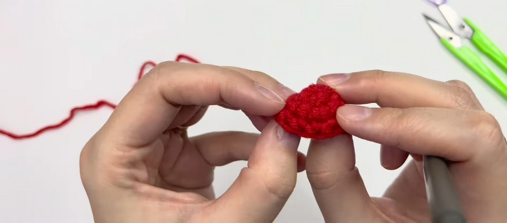 - Do not cut the yarn at the end of the third round. This piece will be joined to the first piece.