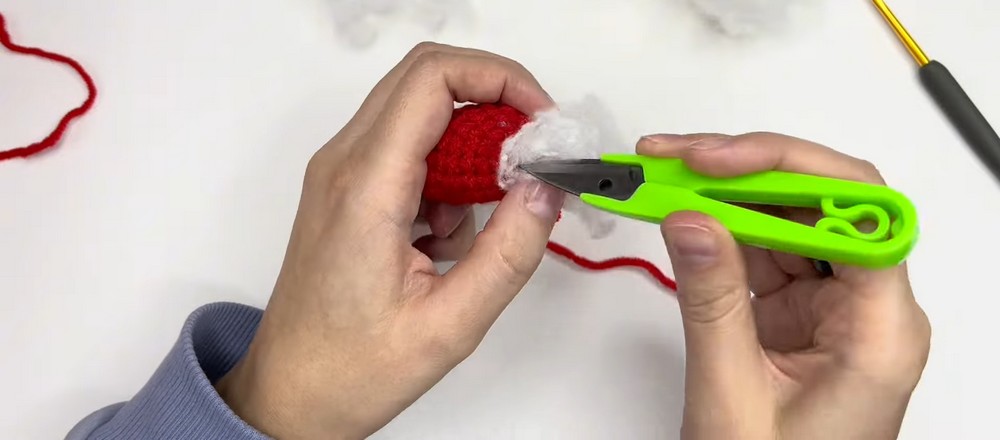 - Begin stuffing the heart with polyfill once the opening starts to narrow.