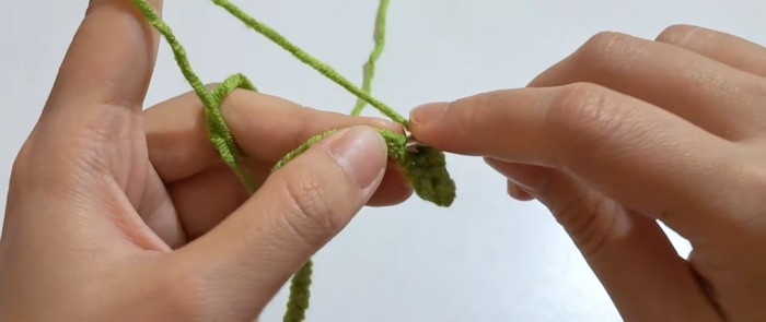- Skip the first chain, SC to the end. Fasten off.