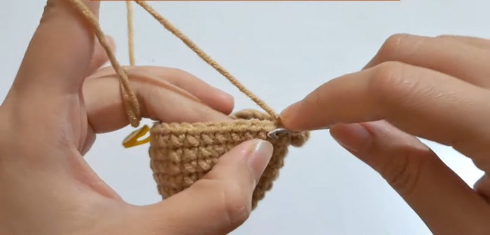 - Rnd 3: 2 SC, Inc twice (8).