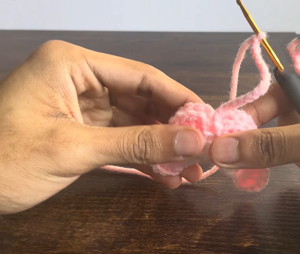 - Work 2 DC (Double Crochet) into the ring and CH 2.
