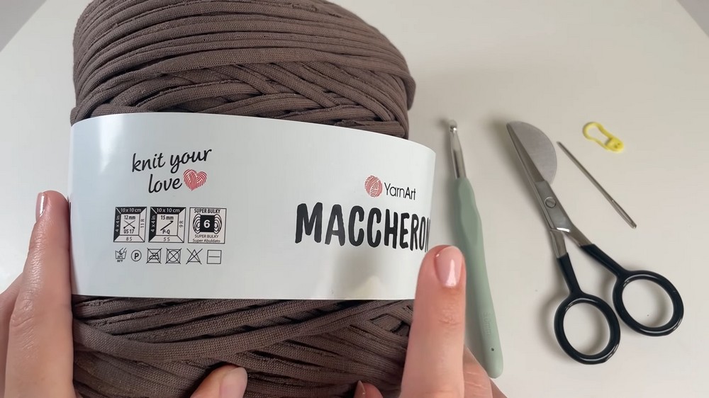 - T-Shirt Yarn: Example used was chunky size 6 t-shirt yarn (Brand: Yarn Art).