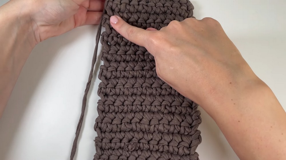 - After completing each row, chain 1, flip your work, and crochet single stitches into each stitch across. Continue this for the desired base length.