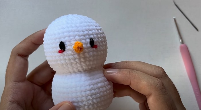 - Pause after round 21 to stuff the doll’s body.