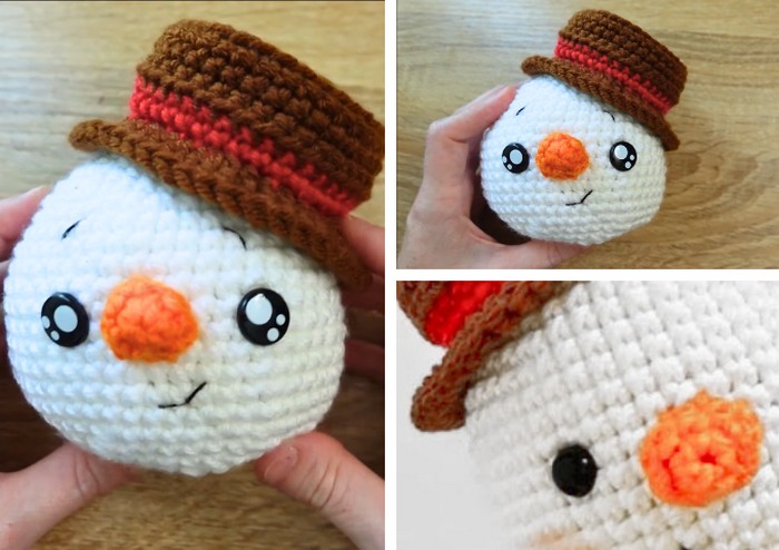 The step-by-step tutorial video for making the Crochet Snowman can be found at the end of the post.