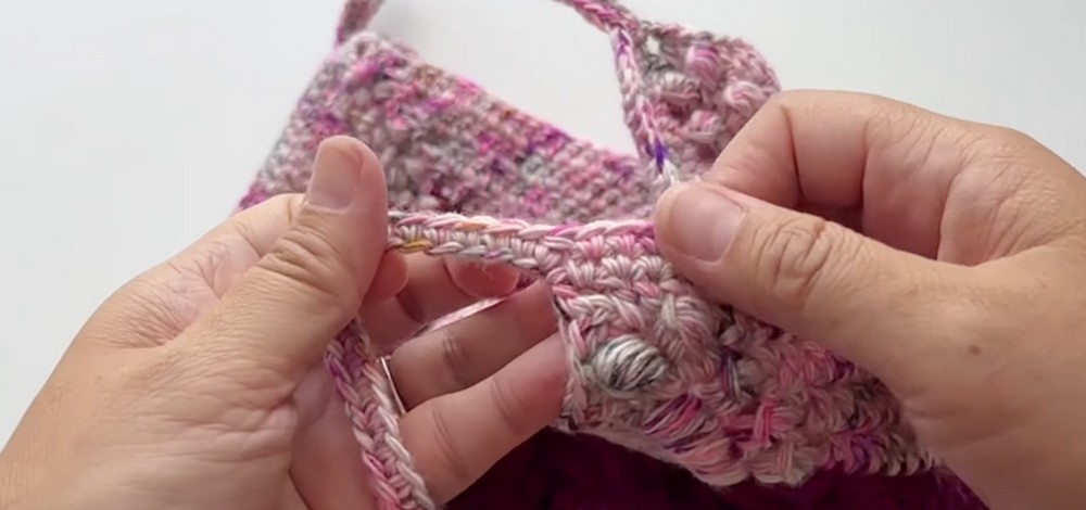 - Work sc along the inner edge of the straps and bag top.