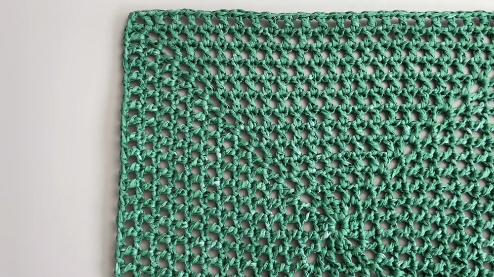 - Work the mesh pattern (ch 1, skip 1 dc, dc in the next dc) along each side, and (dc, ch 2, dc) in each corner.