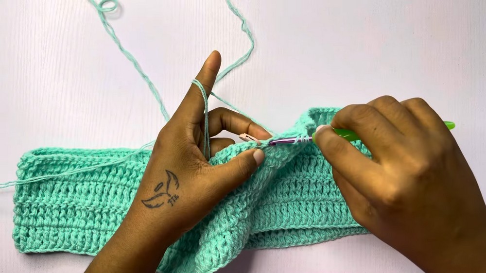 - Row 2–4: Front Post & Back Post Double Crochet: