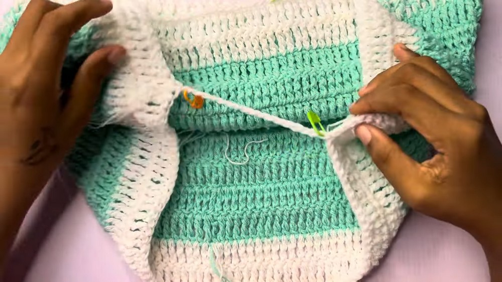 - Use stitch markers to divide the shorts into two equal sections for the legs.