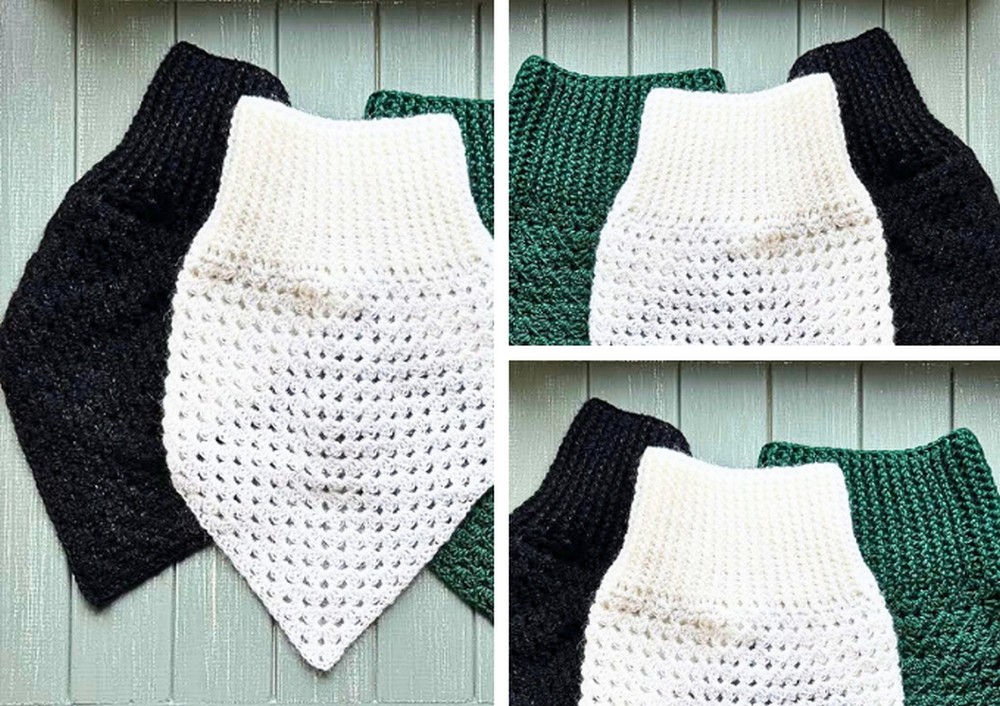 - If tensions seem tight when working post stitches in the neck area, you can incorporate more double crochets evenly.