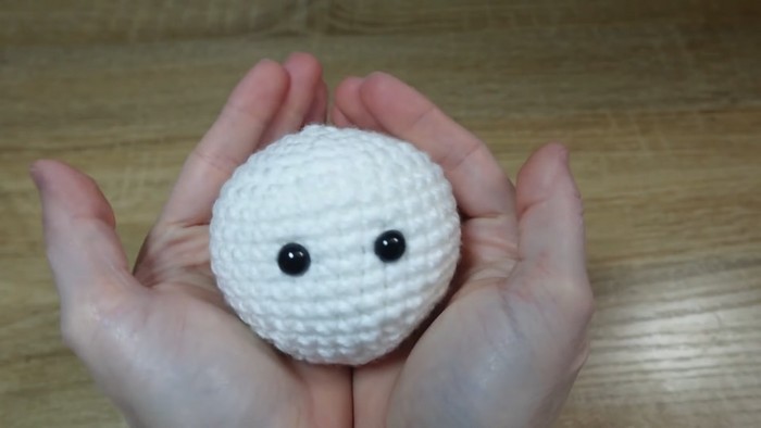 - Insert safety eyes between Rounds 9-10, spacing them 3 stitches apart.