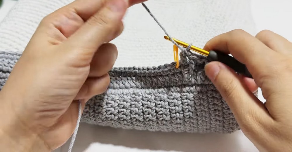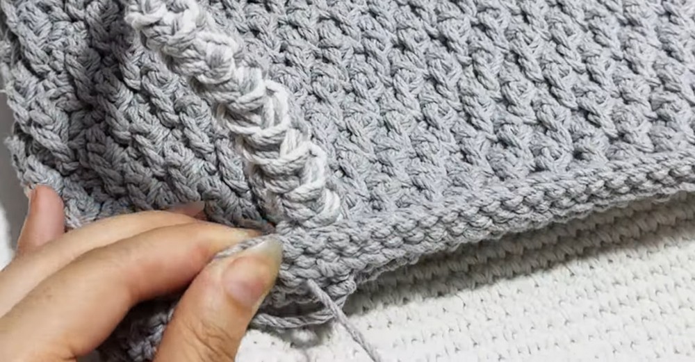- To make the handle, use two threads together (e.g., gray and white) for added durability and design.
