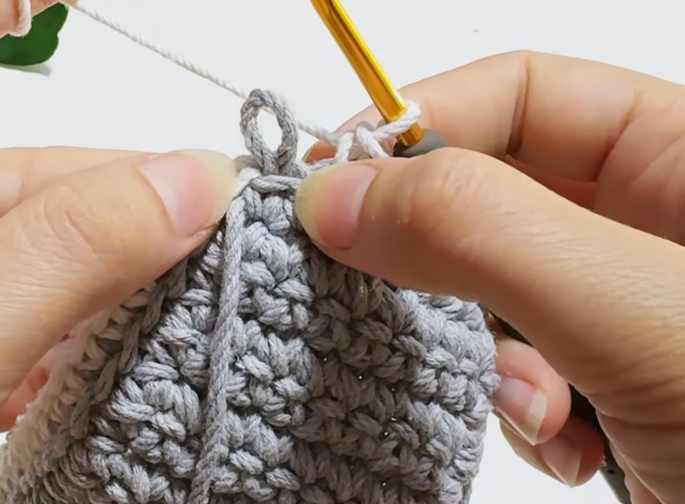 - Work 3 rows of slip stitches at the opening of the bag to create a polished and sturdy edge.