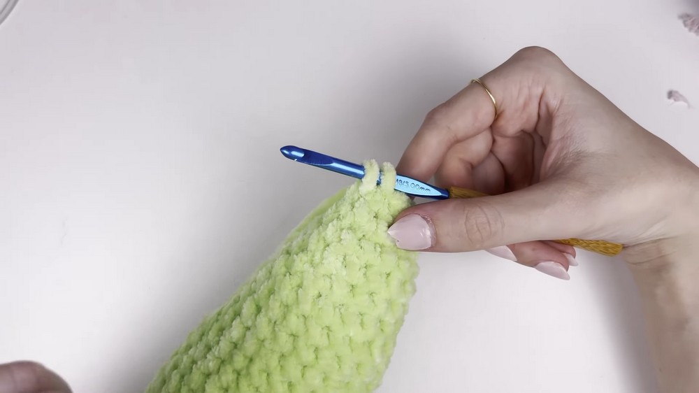 - Step 5: For the next round, crochet 18 SC in the front loops only, then tie off the yarn.