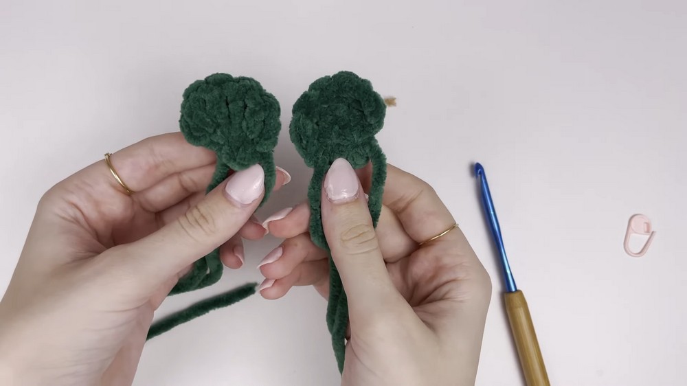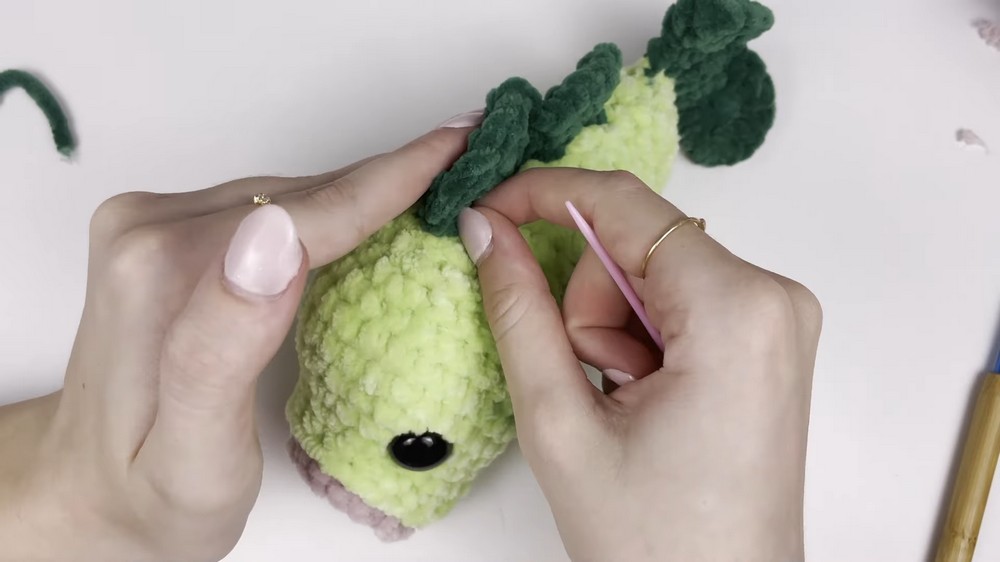 - Step 2: Use dark green yarn for the tail. Chain and turn to create rows:
