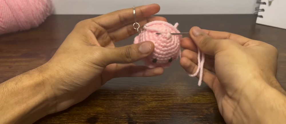 - Use black yarn to embroider small lines or almond-shaped eyes between Rounds 8 and 9.