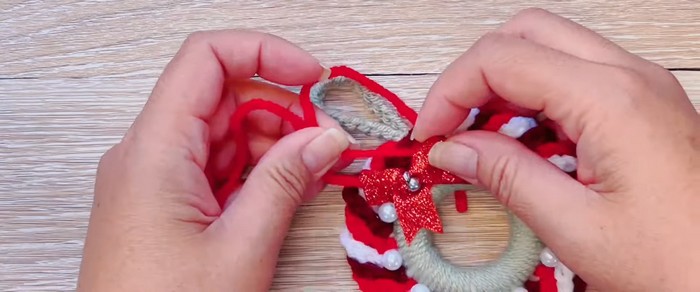 - Attach the decorative bow at the center top using hot glue for a firm placement.