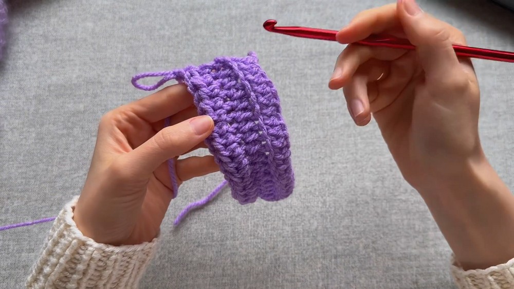 - Work the same technique as the Main Body, using HDC in back loop only.