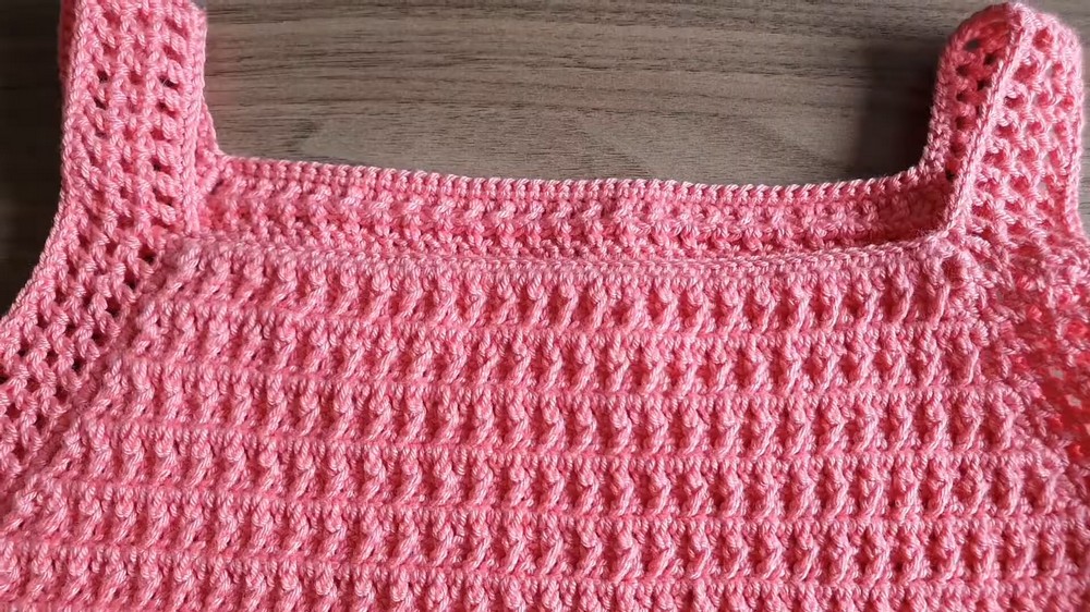 - Repeat Rows 2 and 3, alternating between sc and dc, for a total of 20 rows or until underarm length.