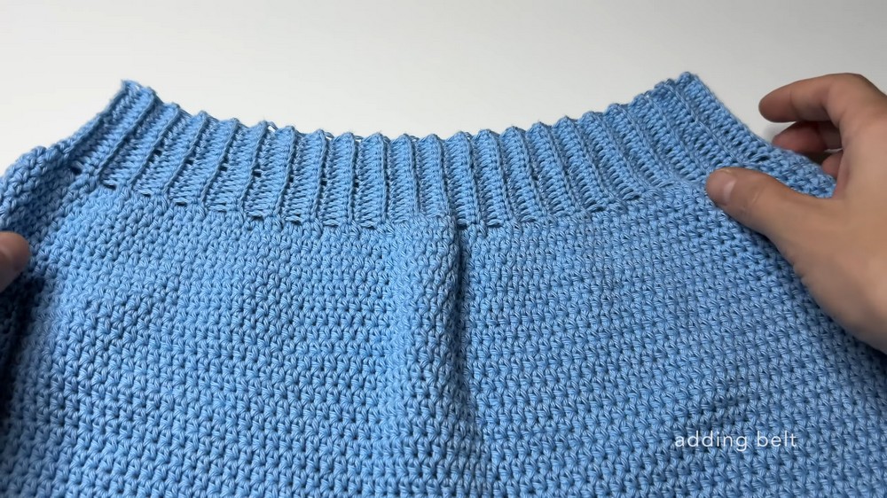 - Skip 1 stitch in the middle to form a hole for the belt.