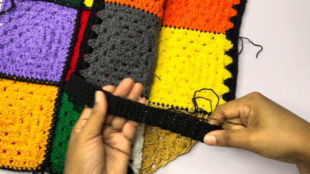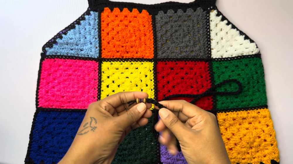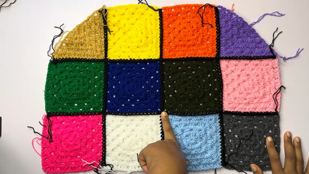 - Adjust the number of granny squares and rows based on your size or desired fit.
