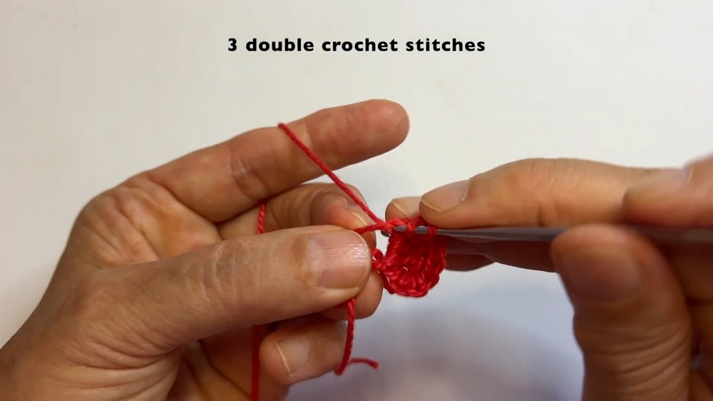 - Work 3 dc into the MR. Each double crochet will fill out more of the heart's shape.