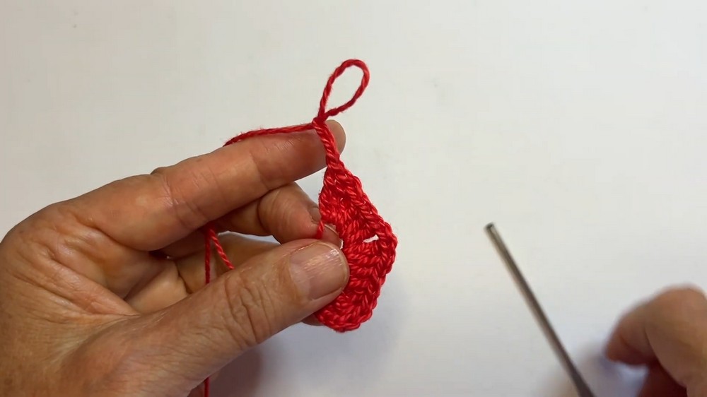 - Similar to Part 2, repeat the following: 3 dc, 3 tr. The heart shape begins to fully form.