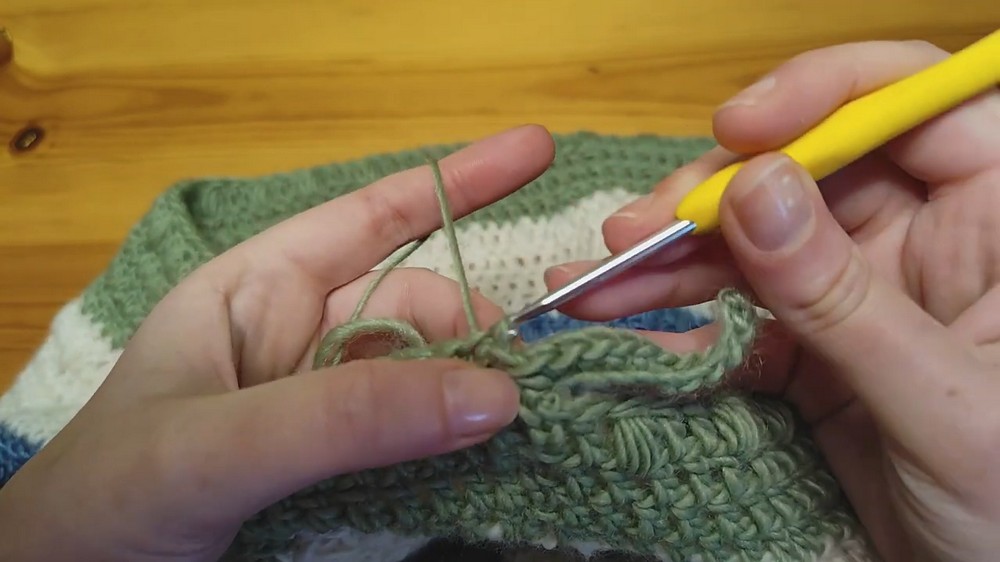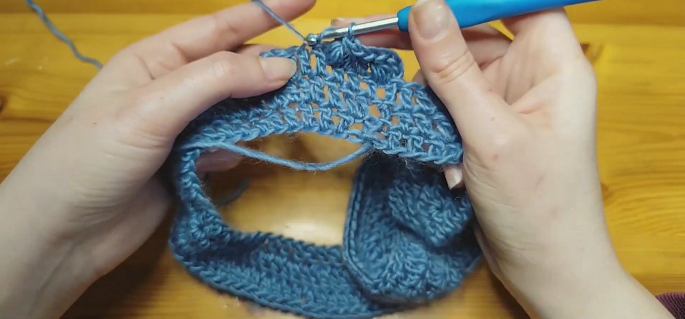 - Add ribbing to the neckline using the 3.5 mm hook.