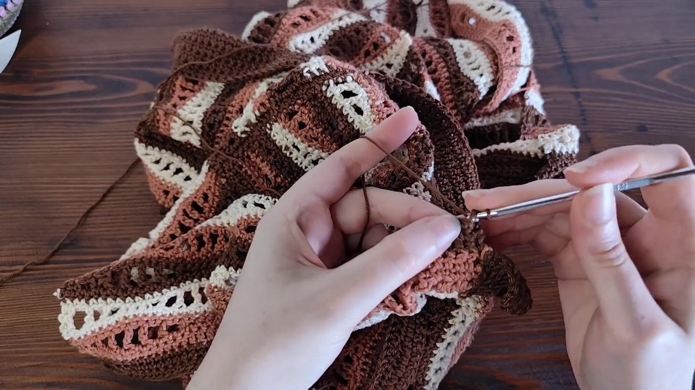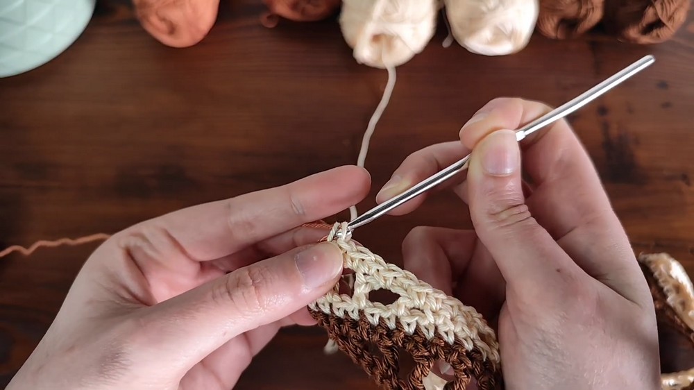 - At the end, change yarn color, leaving the previous yarn unworked. Cut and secure the ends.