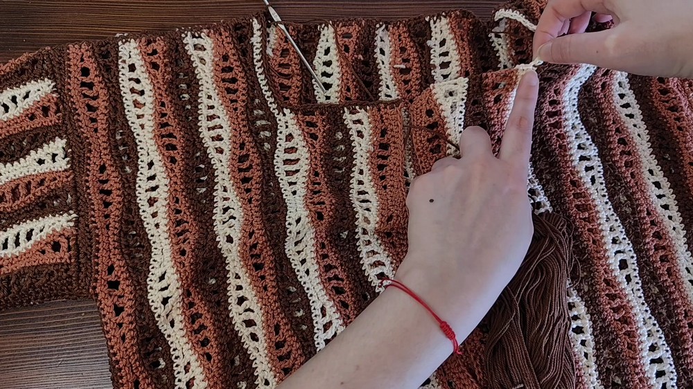 - Add SC rows across the bottom and sleeves if desired.