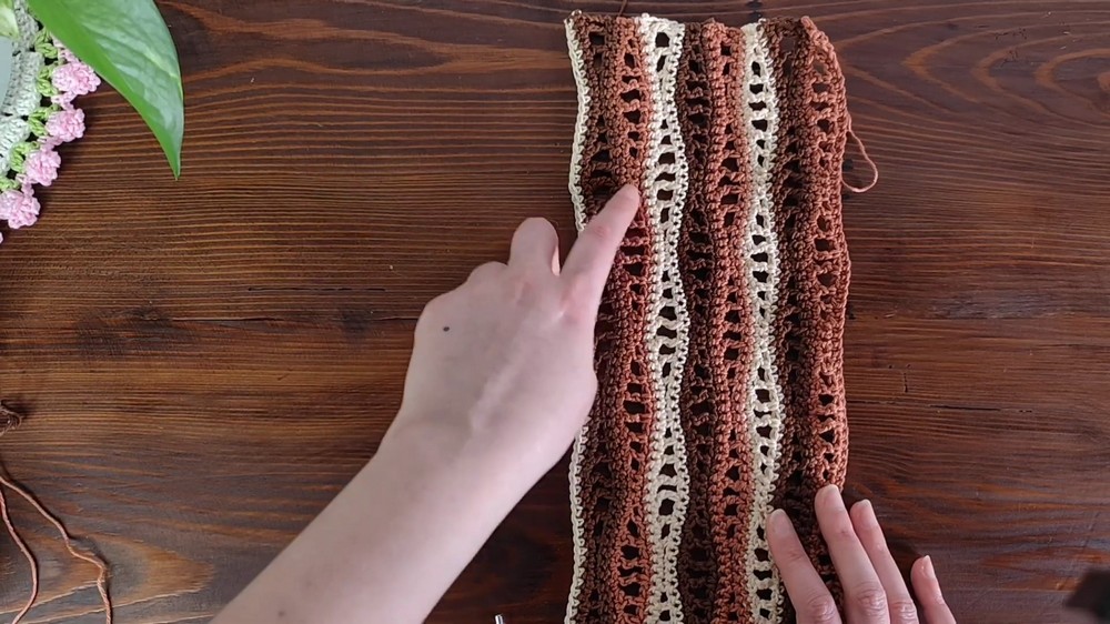 - Crochet until you reach the desired width or the number of waves. For the example, the back panel consists of 27 waves.